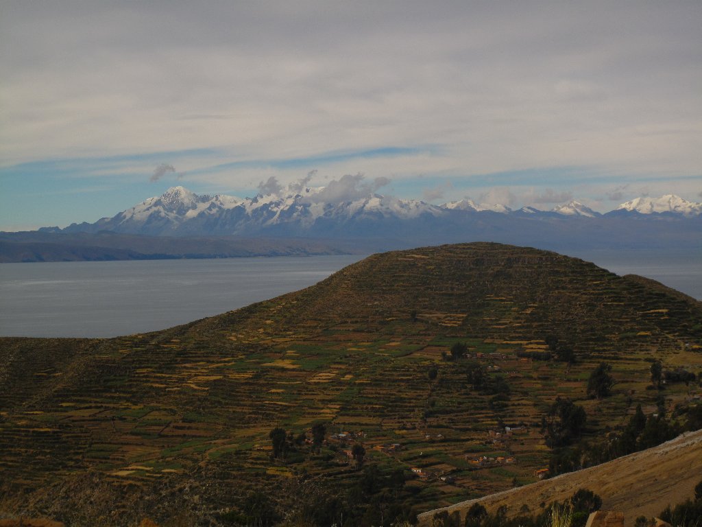 The next morning we set out on a walking tour of the island. As we followed the Inca road north, we were passed by ladies with their flocks of sheep, typically accompanied by a pig or two. We also people with cows, and of course donkeys. Most were very friendly. After passing by a couple of villages and some nice beaches, we arrived at the northern village of Challapampa in time for lunch. Here half the party took the boat south, the other half continued north to visit the ruins and return south by the high road. The ruins were interesting mostly for their spectacular setting high on a peninsula with great views of the lake. With regard to the high road, let me point out the the Incas' favorite direction to go is up, straight up. The road took us directly over the highest parts of the island, which literally takes one's breath away at approximately 4000 meters above sea level. The scenery was not bad, which provided a nice distraction. The next morning it was down the 382 steps with our luggage for the return boat ride. We all appreciated how much easier it was going down than up.